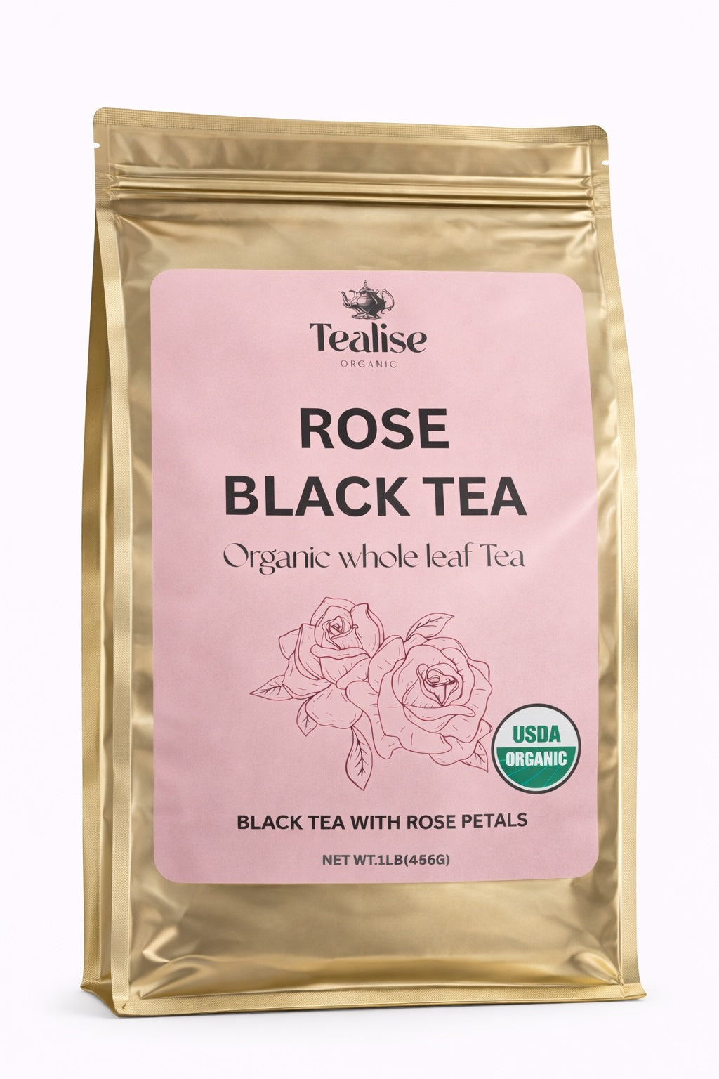 Tealise Organic Rose Black Tea is crafted from premium whole black tea leaves blended with natural rose petals to create a beautifully balanced floral tea.